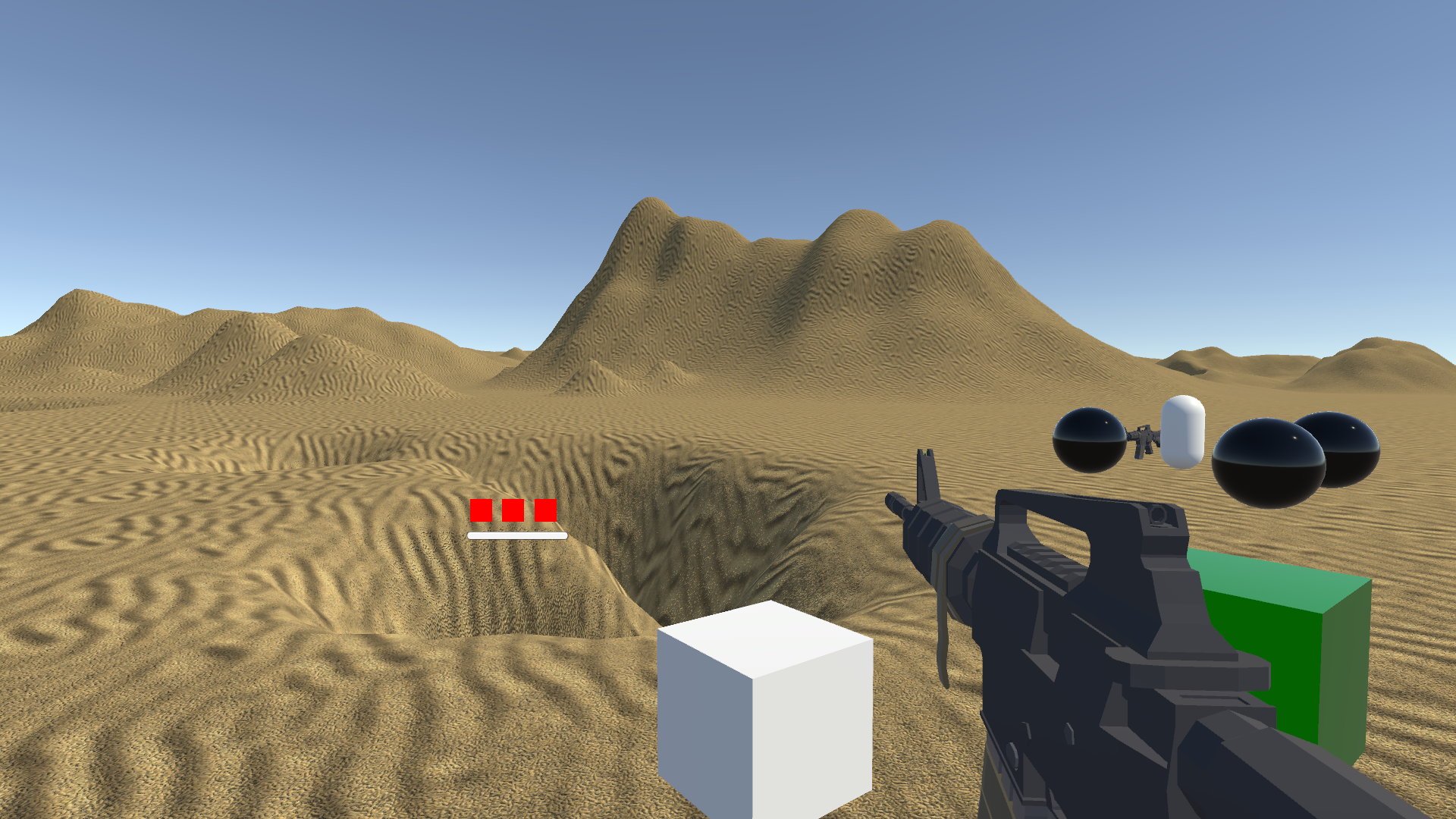 I really don’t know what the black sphere is for; it just turns the red square displayed in the UI green.